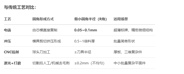 電鑄圓角的獨特優勢: